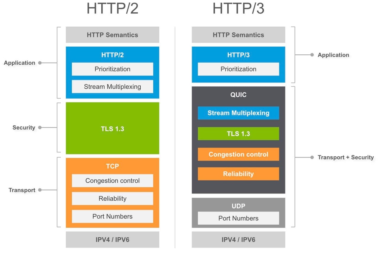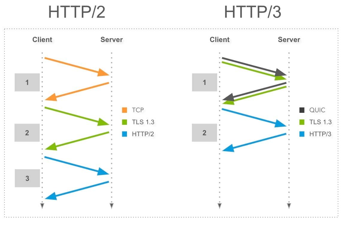 - 패킷 손실 효과 감소, 왕복 시간 0, 보다 포괄적인 암호화, 보다 빠른 연결 설정같은 솔루션 제공