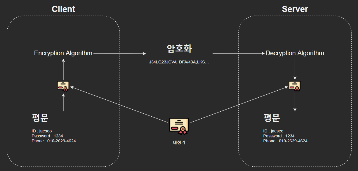 - Client와 Server가 동일한 키를 사용해 암복호화 진행