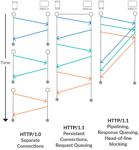 - HTTP/1.1은 한 번의 연결에 여러 요청을 보내는 Pipeline은 지원했지만, 동시에 여러 요청을 처리하지는 못 하는 한계 존재