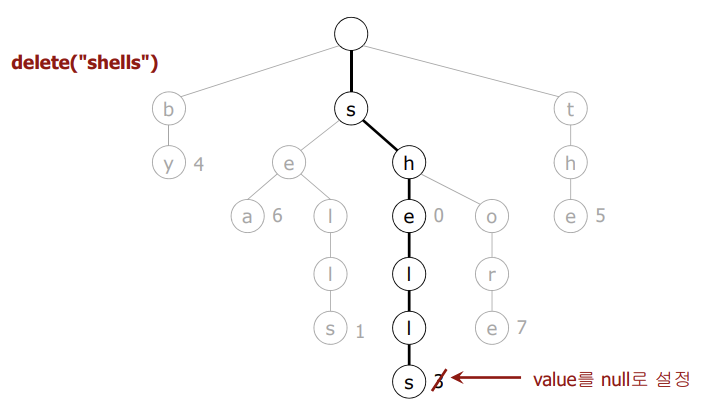 - 키를 저장한 노드를 발견한 후, 해당 노드의 값을 null로 설정