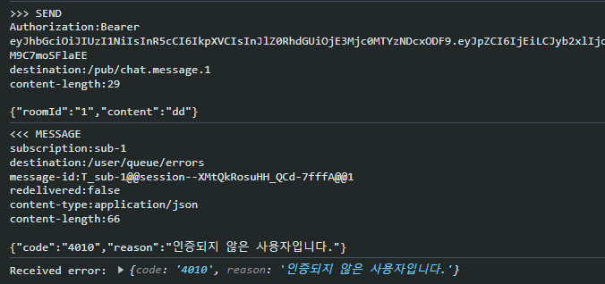 STOMP 서브 프로토콜을 사용하므로, pub/sub 구조의 요청과 응답을 주고 받아야 한다.