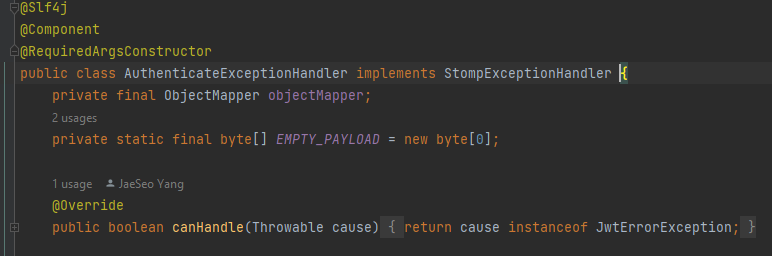 public class AuthenticateExceptionHandler extends AbstractStompExceptionHandler {