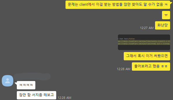 참고로 해당 포스팅을 참고하려는 사람이 있다면, 채팅 서버는 Spring이 아니라 node.js + socket.io 조합을 추천한다.