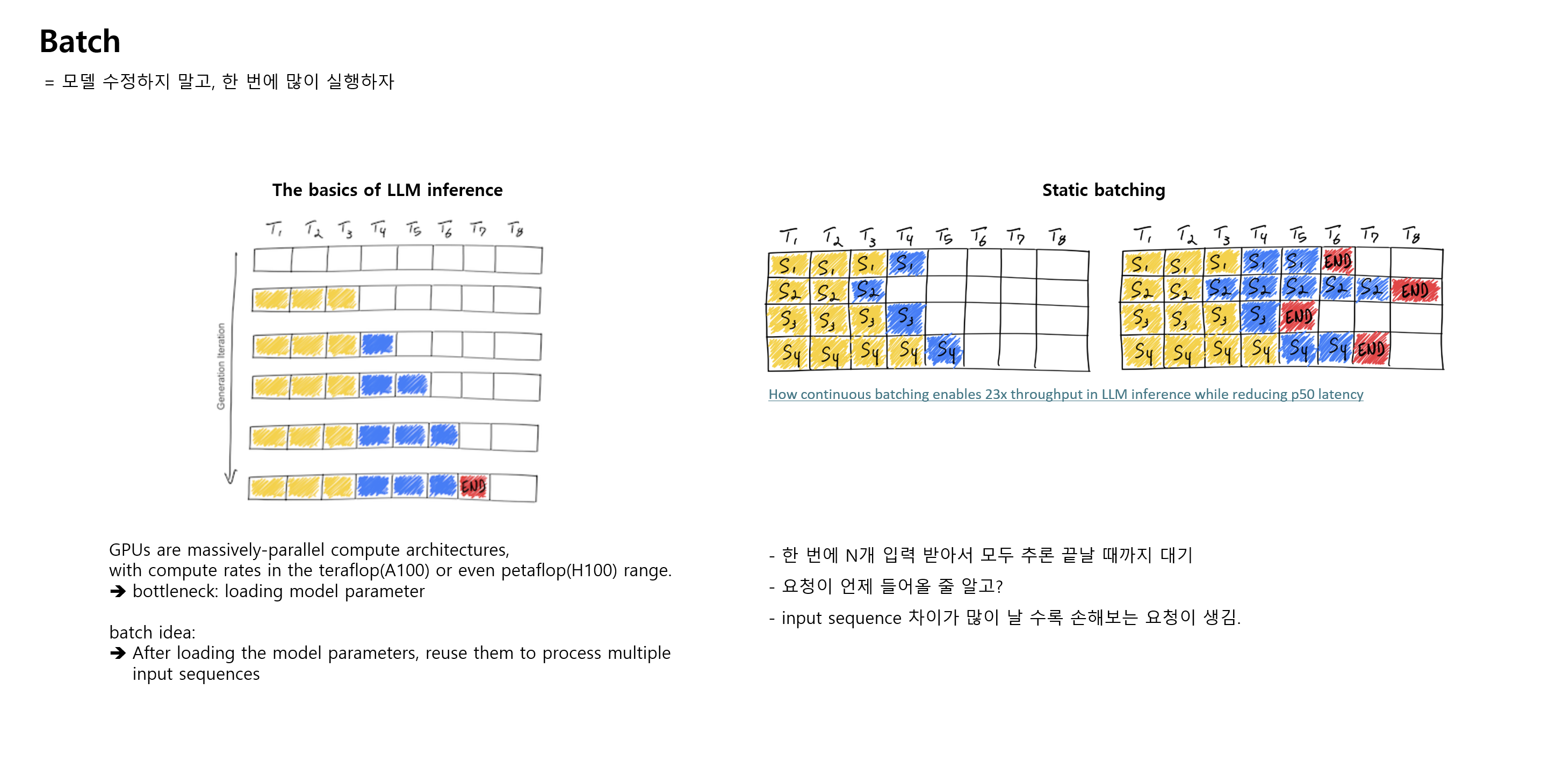 - 힘들게 모델 파라미터 로드했는데, 굳이 요청 하나만 처리할거냐? 그냥 한 번에 많이 받아서 처리해버리자.