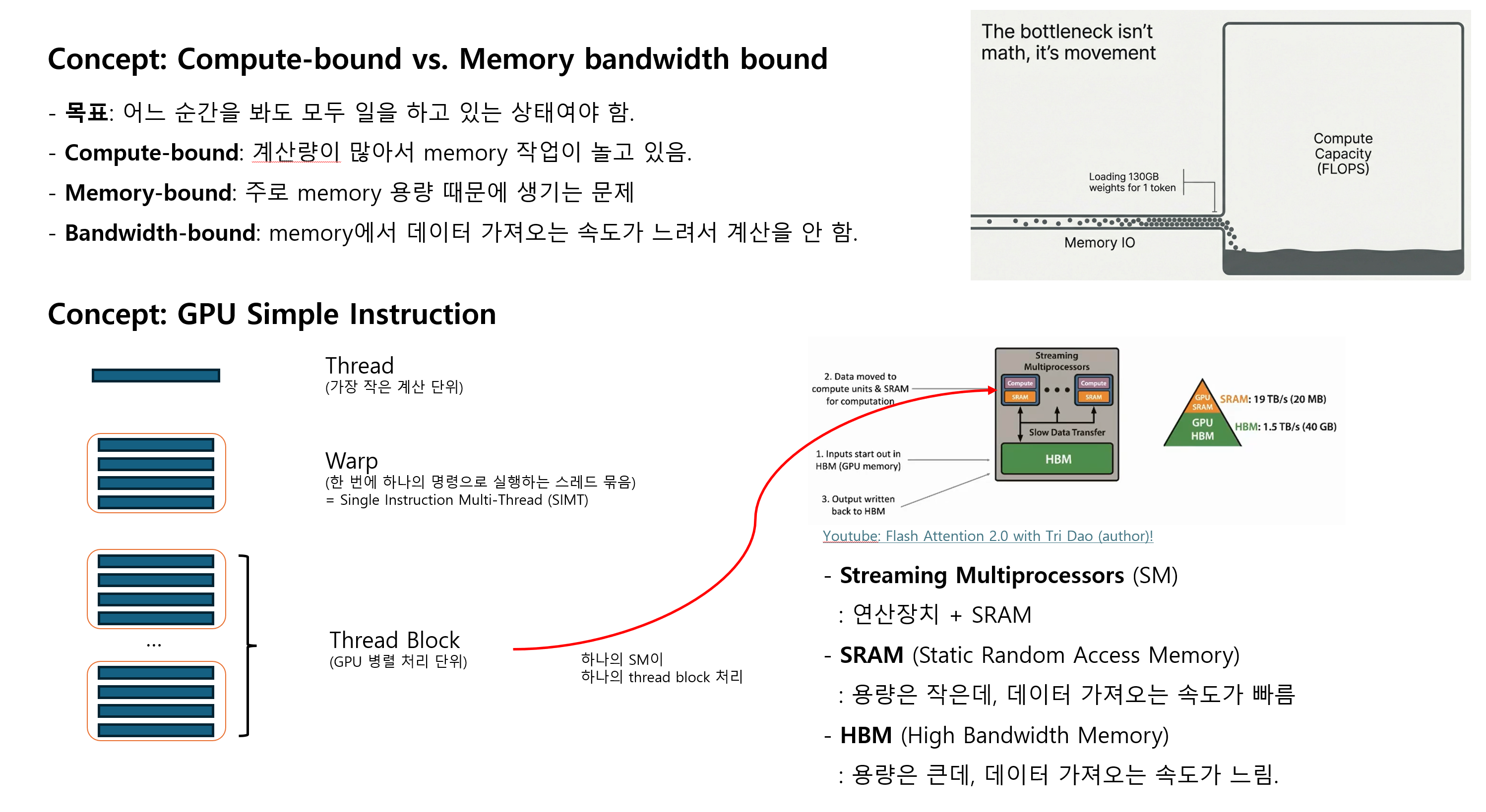 - 기존에도 행렬 곱셈이긴 한데, HBM 왔다갔다하는 게 병목점 -> SRAM만 쓰자
